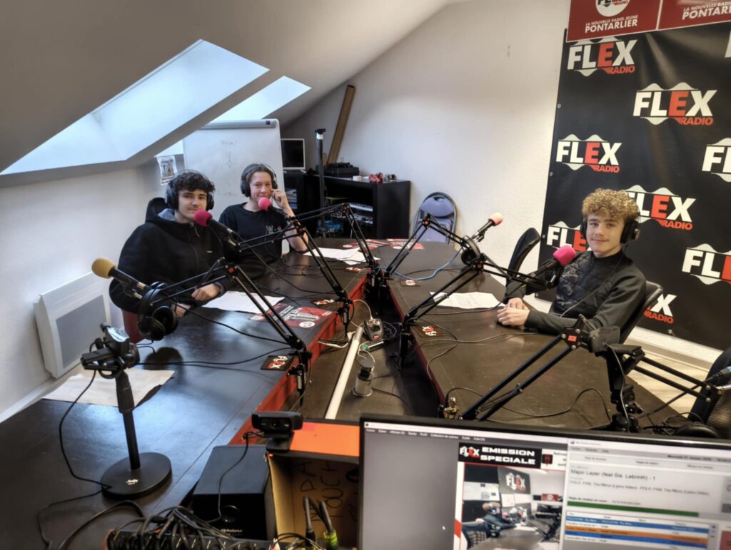 EMISSIONS SPECIALES Mission Locale 30-01-2026 Emission Fondation Pluriel 28-01-2026 FlexActuJunior 27-01-2026 Emission DGEMC Les Augustins Pontarlier Métiers du droit et procès Péchier 26-01-2026 Emission avec les 4ème et 3ème de la MFR de Pontarlier 21-01-2026 La fondation Pluriel vous souhaite la bonne année 14-01-2026 FlexActuJunior 13-01-2026 Mission Locale (Solène, Pauline et Cindy) 19-12-2025 Emission 2nde Classe Media Lycée Xavier Marmier Pontarlier 18-12-2025 FlexActuJunior 16-12-2025 Emission 2nde Lycée Xavier Marmier: EMC: l'Etat de Droit 11-12-2025 Emission Présentation Filière Bac Pro Métiers de la Sécurité (Lycée Saint Bénigne) Mathilde et Mélissa 09-12-2025 Emission FlexActu Junior 02-12-2025 Emission Mission Locale 21-11-2025 Emission 2nde Classe Média LXM 20-11-2025 Emission FlexActu Junior (1ère de la saison) 18-11-2025 Des lectures d’Halloween de collégiens sur Flexradio 27-11-2025 Emission CM2 Ecole Primaire Vauthier 30-06-2025 Emission Finalistes Concours à Voix Haute (5ème collège les Augustins) 26-06-2025 Emission Grande Section Ecole Maternelle Vauthier 16-06-2025 Emission Classe Média Lycée Xavier Marmier 02-06-2025 Emission avec les moyennes sections de l'école Vauthier 26-05-2025 3èmes 1 et 4 Collège André Malraux Slam, rap et actu 16-05-2025 Classe Média Xavier Marmier Groupe 3 05-05-2025 Emission avec les 2ndes Bac Pro Vente Lycée Jeanne d'Arc 04-04-2025 Emission Spéciale César des Lycéens (lycée Les Augustins Term Spé SES) 02-04-2025 Emission Spéciale DGEMC Les Augustins : les métiers du droit 01-04-2025 Emission Spéciale 2nde Métiers de la Sécurité Lycée Saint Bénigne 31-03-2025 Classe Média Lycée Xavier Marmier 02-12-2024 Emission sur Simone Veil 3ème Collège Aubrac Pontarlier 21-03-2025
